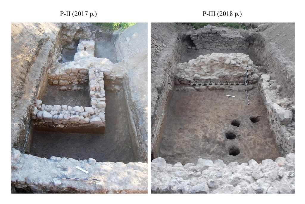 Отримані хронологічні колонки виглядали доволі чітко, але для їх уточнення польові роботи були продовжені ще і в сезоні 2018 року (Відкритий лист, форма 1, №242/01610 від 6 червня 2018 р. на проведення наукових археологічних досліджень (розкопок) фортеці середньовічного Угорського королівства (ранньомодерний час XVI – XVIII ст. на території смт. Середнє Ужгородського району Закарпатської області (археологічна практика студентів); Дозвіл №22-299/18 від 29 грудня 2018 р. на розкопки фортеці середньовічного Угорського королівства (ранньомодерний час XIV – XVII ст.) в смт. Середнє Ужгородського р-ну Закарпатської обл.). Розкоп ІІІ (12 х 4 м) був прирізаний до північної бровки розкопу ІІ. Стратиграфічна ситуація ідентична простеженій під час досліджень 2008 та 2017 років. Відкриті фундаменти стін також представляли два різні хронологічні горизонти. Майже всі виявлені матеріали датуються XVI – XVII ст. До більш раннього часу (XV ст.) відносяться лише дві застібки обкладинок книг. Не виключено, що наприкінці XV ст. вже був побудований палац, який згодом став ядром замкового комплексу, або предмети, які традиційно датуємо часом їх виникнення, використовувались тривалий період і момент їх археологізації припадає не на XV, а на XVІ ст.
